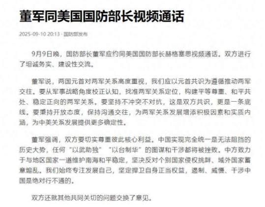 在此之前,美国防长赫格塞思曾抱怨试图与中方沟通,但中方却“已读不回”。而这次中方选择主动接听电话,显然并非偶然。背后可能包含着几个重要考虑。